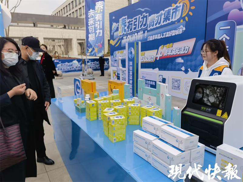 △专场招聘会吸引学生参加 为了让学生们有更为直观的感受,活动现场,由泰州市委人才办和团市委倾心打造了沉浸式体验场景—— " 泰有引力 " 青才集市。