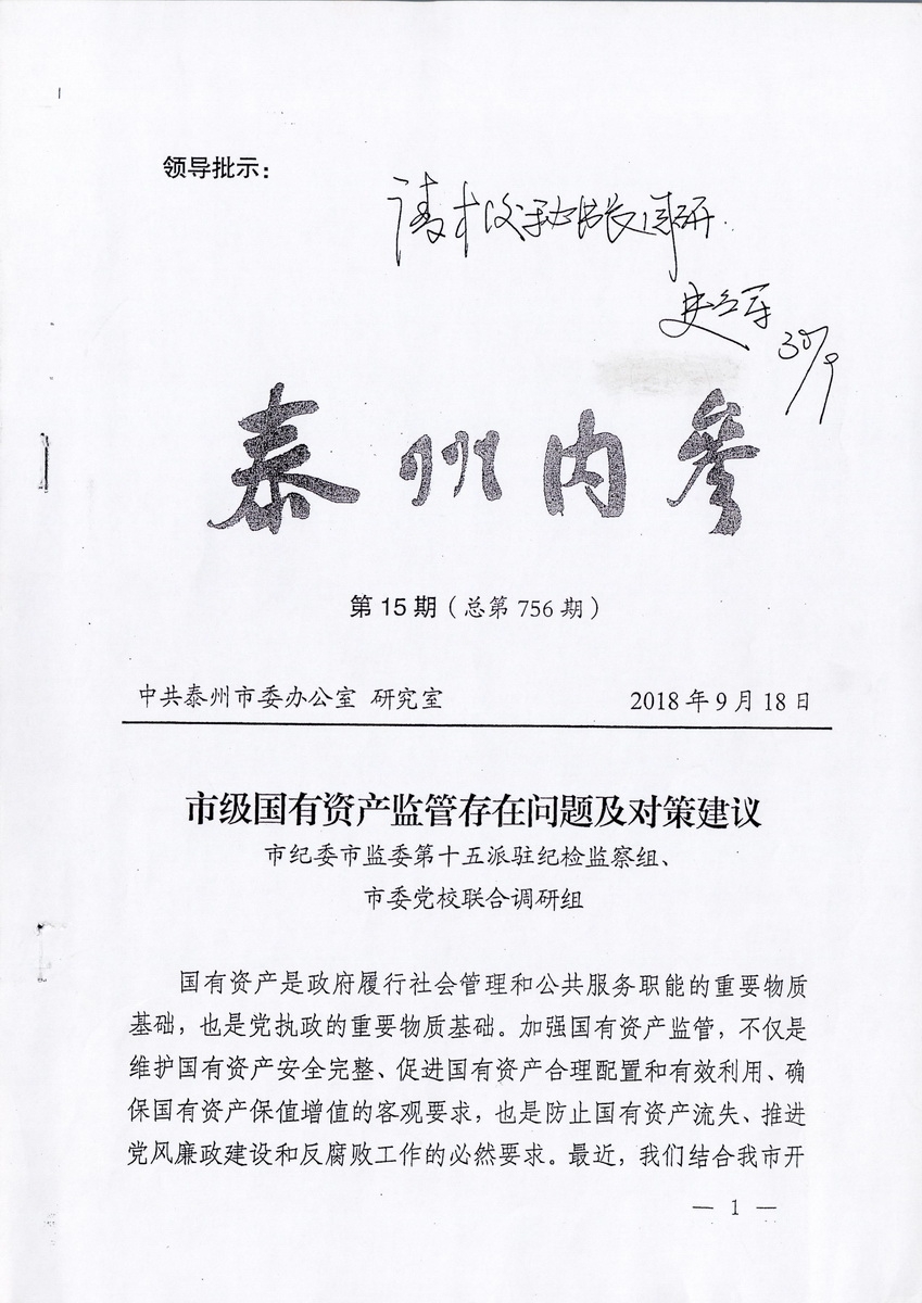 市级国有资产监管存在问题及对策建议