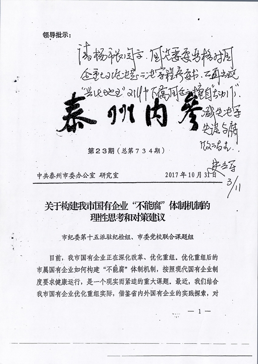 关于构建我市国有企业“不能腐”体制机制的理性思考和对策建议