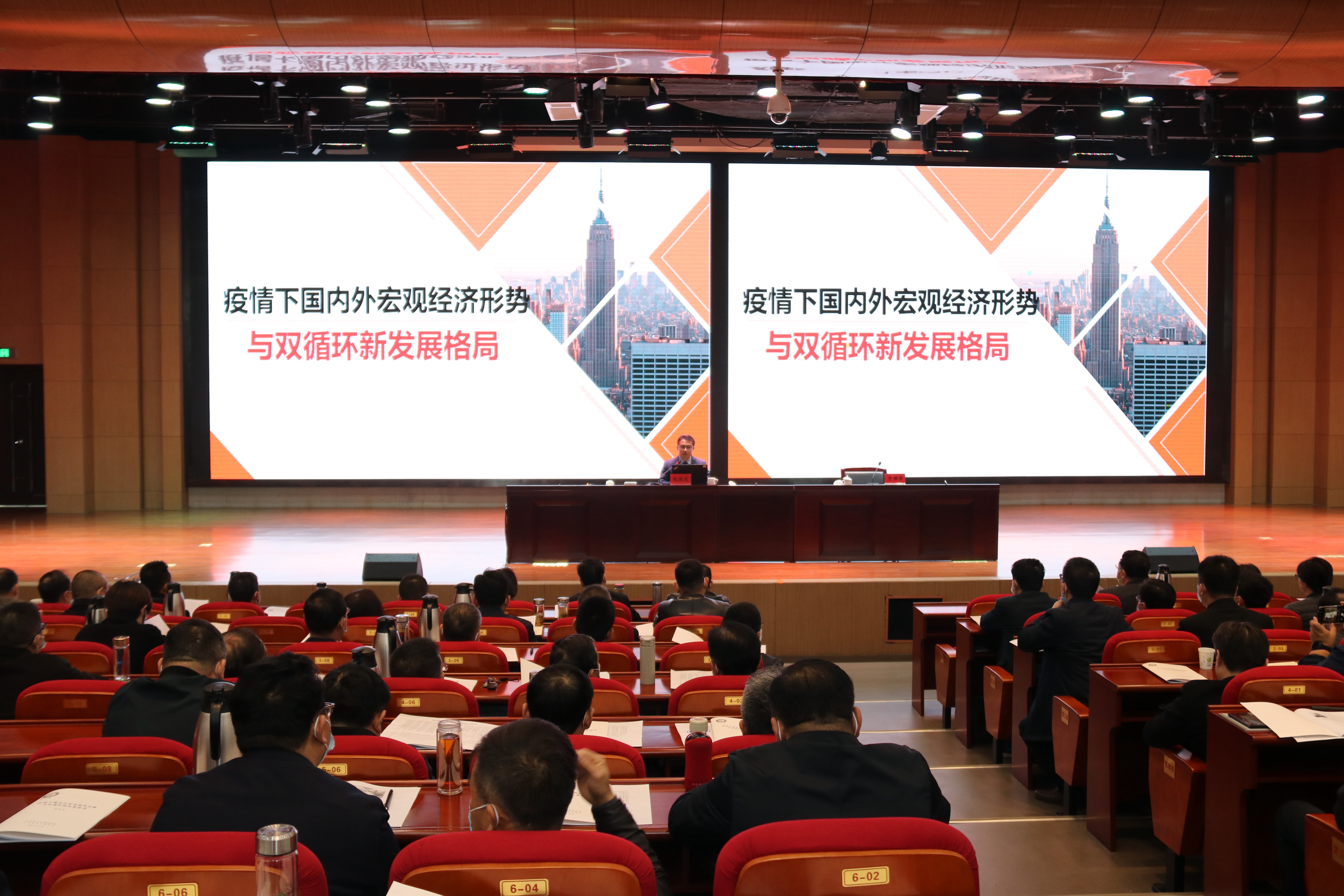 11月20日上午,第97期泰州干部教育“名家讲坛”在我校举行,上海大学经济学院教授张恒龙应邀作“疫情下国内外宏观经济形势与双循环新发展格局”专题报告。