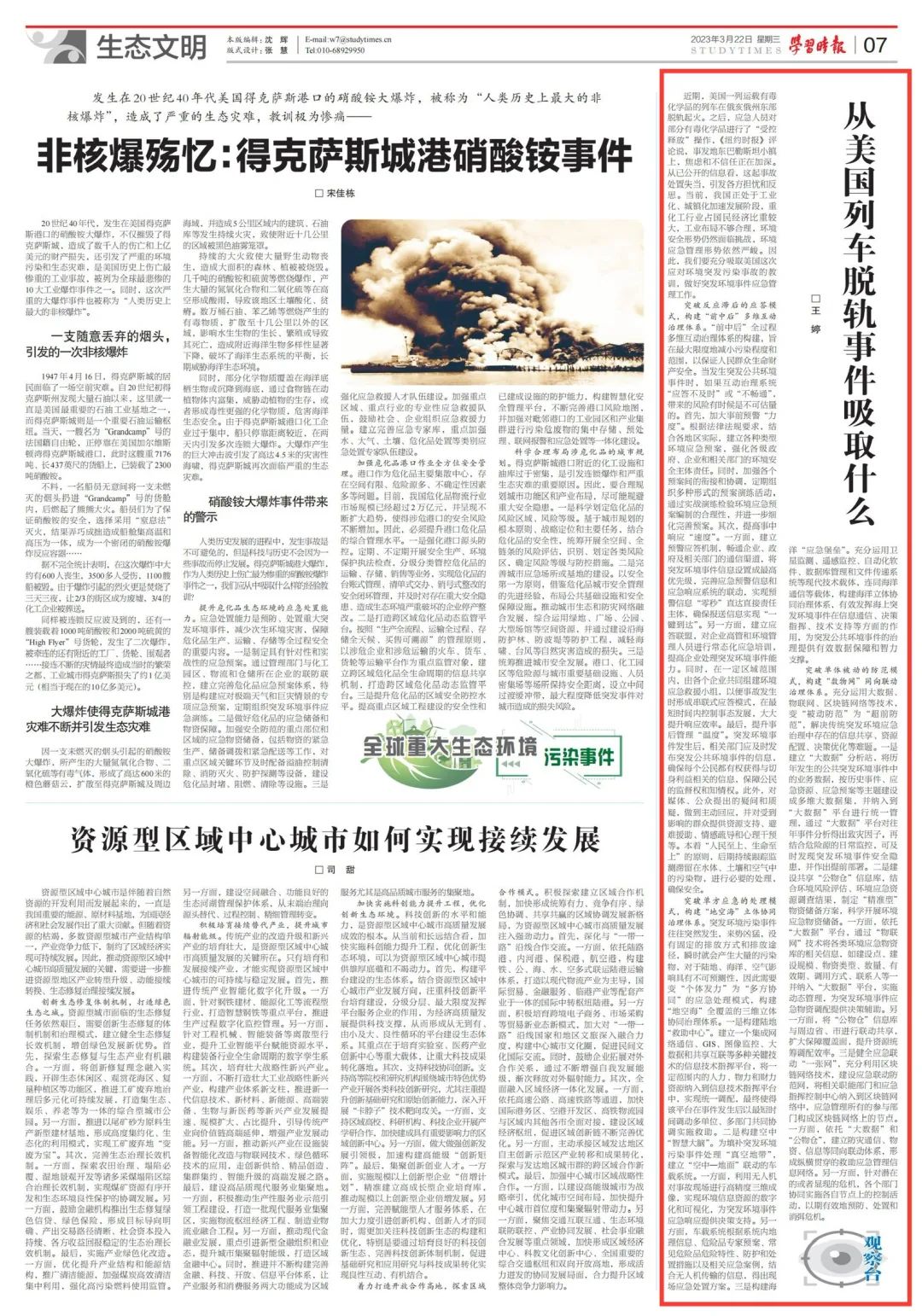 编者按:坚守为党育才、为党献策的初心,要求党校把理论研究和实践经验结合起来,把各层次各方面的研究贯通起来,把论文写在祖国大地上,使研究成果“国家得其用,社会得其益”。近年来,泰州市委党校全体教师坚持围绕中心、服务大局,以强烈的家国情怀,深耕主责主业,发挥自身优势,在为党建言、为党献策上取得了一系列成果。近日,王婷老师的文章《从美国列车脱轨事件吸取什么》在中央党校《学习时报》发表。以下为文章全文: