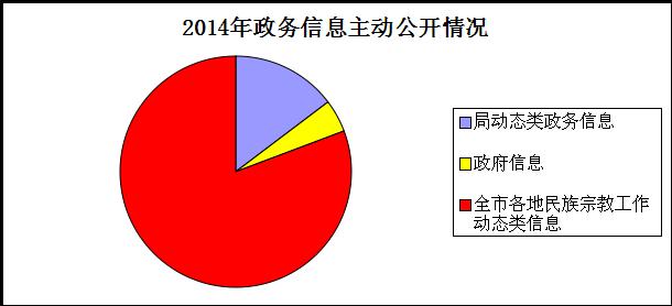 2014年,我局对新产生的应主动公开的政府信息,都根据有关要求及时向社会公开,及时公布行政权力运行、财政资金使用等重点事项信息,全年通过门户网站和其他平台向社会主动公开局动态类政务信息77条、主动公开政府信息26条、全市各地民族宗教工作动态类信息423条。